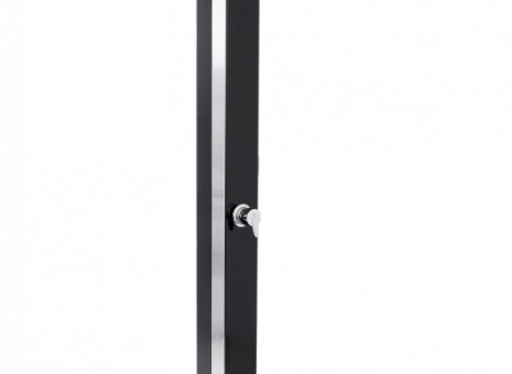 Visoko kvalitetan solarni tuš izrađen od inox-a, crno lakiranog aluminija i tamnog stakla.